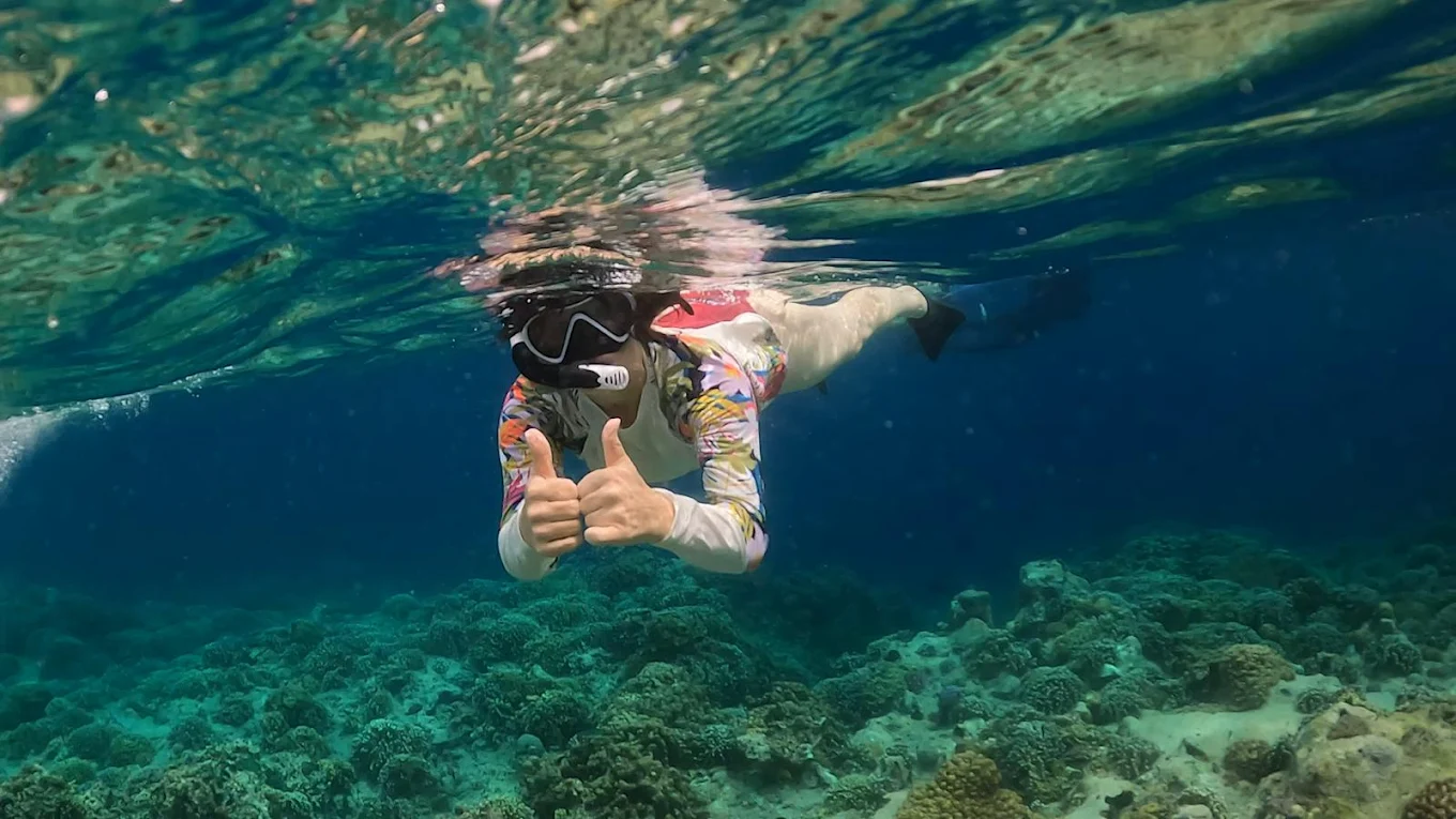 Crystal clear water, colorful coral reefs, and calm conditions suitable for beginners and families.